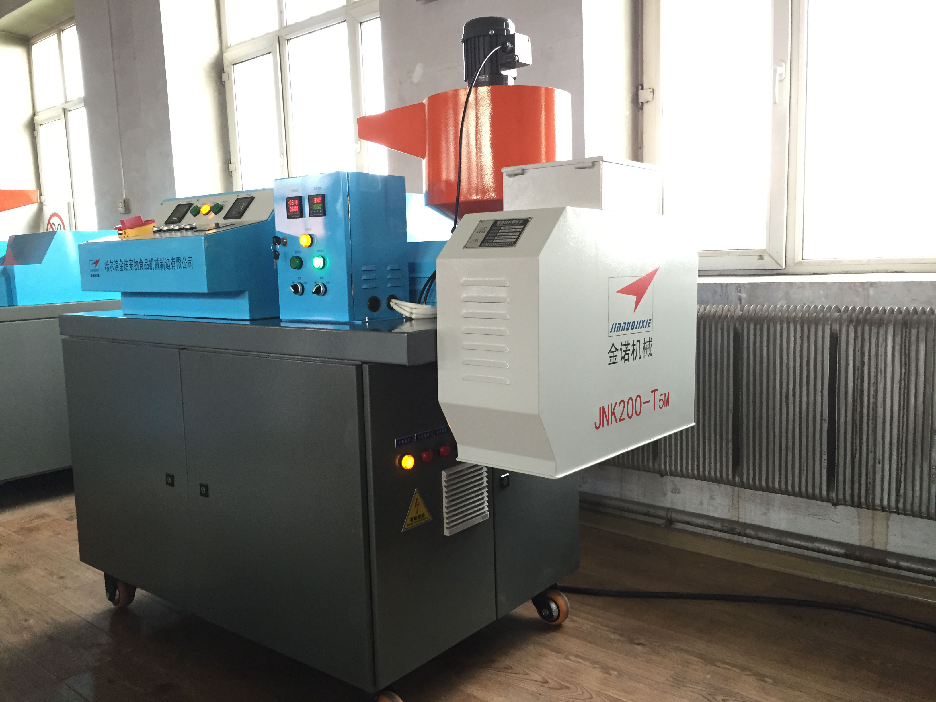 狗糧加工設(shè)備JNK200-T5M:1。JNK200-T5M型狗糧加工設(shè)備安裝方便、出廠已經(jīng)試機(jī),狗糧機(jī)切刀采用直角切刀技術(shù),調(diào)試簡單;2。狗糧設(shè)備的主軸和切刀小軸均可隨時注入耐高溫潤滑脂,延長狗糧機(jī)的軸承使用壽命;3。JNK200-T5M狗糧設(shè)備每小時生產(chǎn)狗糧顆粒200公斤。